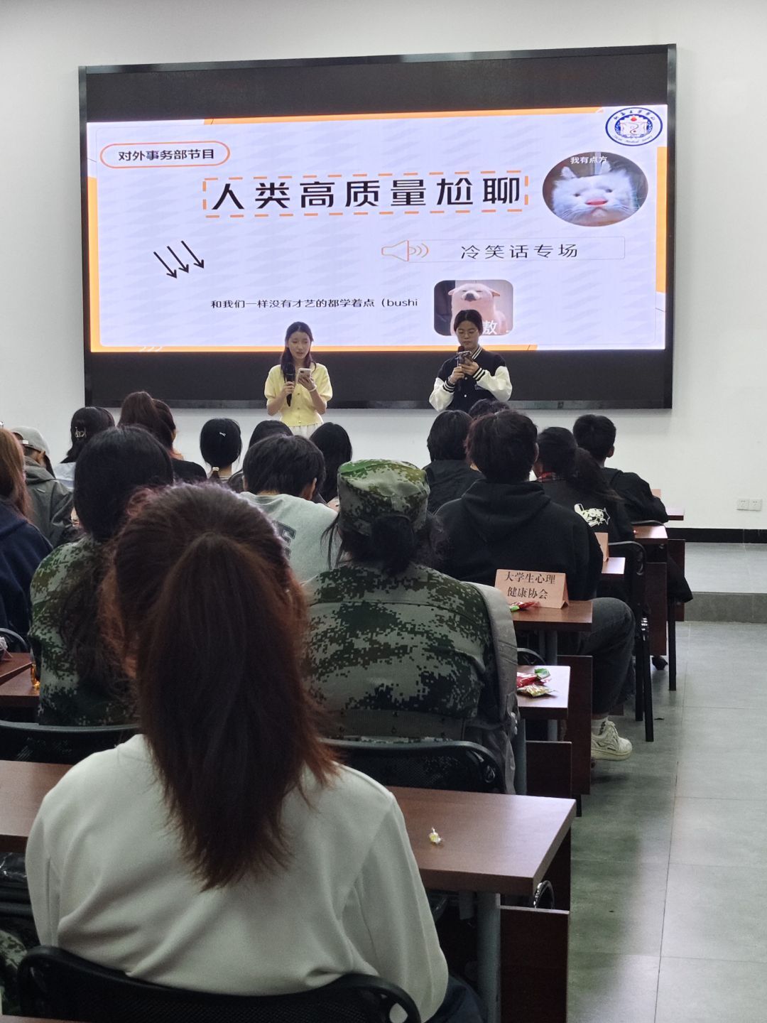 此次大會我們社團的成員積極參加,熱情洋溢的舞蹈,膾炙人口的歌曲,幽默搞笑的小品……都傳遞出我們對于新生的熱烈歡迎。在大會上的新生,與我們攜手共建良好歡樂的氛圍,新生們參與我的的傳艾草錘,emoji猜猜猜等小游戲。大會上更有大四大五學姐學長來助陣,他們帶來了他們的配音秀,歌曲以及對新生們的美好祝福。