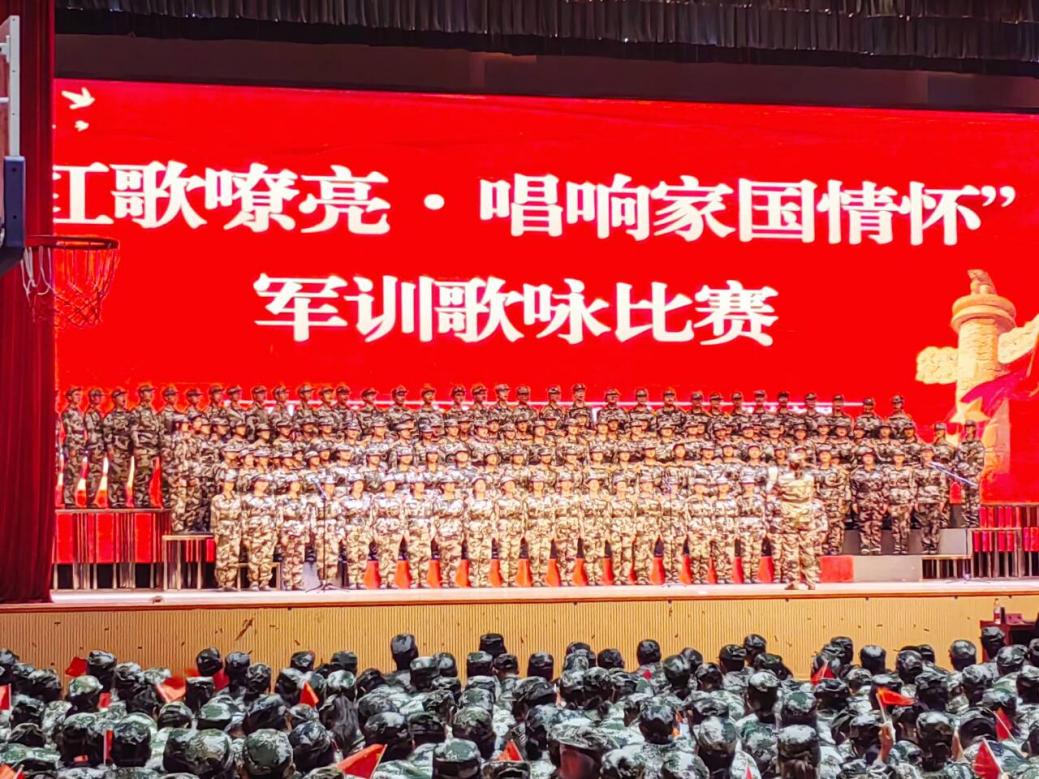 比賽在莊重的氛圍中拉開序幕。各營隊身著統一軍訓服,精神抖擻地依次登場。為增強藝術感染力,同學們在演唱中巧妙融入多元創意,學子們歌聲嘹亮、情感真摯,每一句演唱都飽含對家國的赤誠熱愛,不時引發全場共鳴,掌聲與合唱聲交織回蕩!陡璩鎳贰段覑勰阒袊返冉浀浼t歌接連響徹場館,學子們用嘹亮的歌聲回溯崢嶸歲月,以真摯的情感致敬英雄先輩。