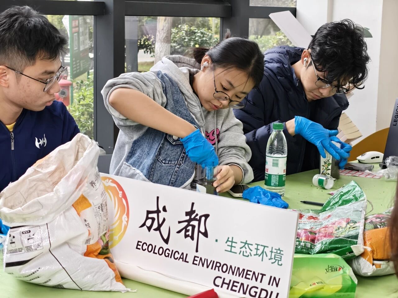 在專業(yè)指導(dǎo)下,參與者們手持工具,將閑置塑料瓶裁剪、打磨、裝飾,原本可能被丟棄的“白色垃圾”,逐漸蛻變成帶有個(gè)人風(fēng)格的創(chuàng)意花盆,讓大家直觀感受到“舊物新生”的成就感。捧著親手改造的花盆,參與者們迎來成都特色植物種子的“安家時(shí)刻”。負(fù)責(zé)人細(xì)致演示催芽、上盆、養(yǎng)護(hù)的每一步,有種植經(jīng)驗(yàn)的同學(xué)也在現(xiàn)場(chǎng)熱心幫助大家,事無巨細(xì)的講解讓新手也能輕松掌握種植技巧。當(dāng)一顆顆種子被小心埋入土壤,現(xiàn)場(chǎng)彌漫著對(duì)生命成長的憧憬。“塑料瓶改造的花盆耐用嗎?”“不同植物的生長能力有差異嗎?”……在交流環(huán)節(jié),參與者們踴躍分享想法、提出疑問,思想的碰撞讓“雙碳”理念從知識(shí)層面深入到實(shí)踐認(rèn)知,社區(qū)互動(dòng)的溫度也在此刻升溫。
