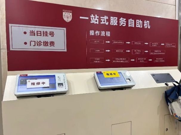 復旦大學附屬華山醫院的一站式服務自助機與操作流程圖 通訊員 胡奕揚 供圖