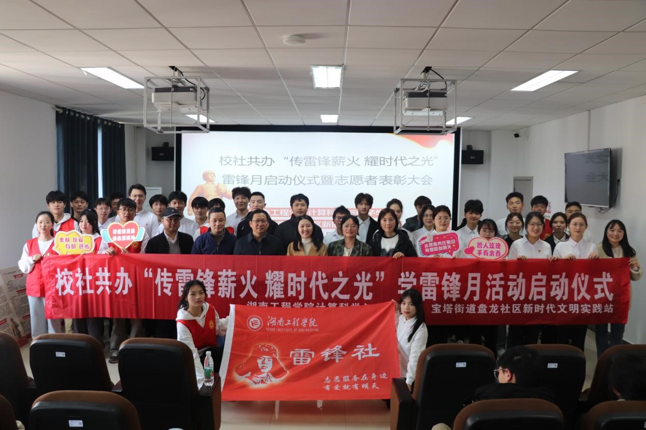 “如果你是一滴水,你是否滋潤了一寸土地?如果你是一線陽光,你是否照亮了黑暗?”3月19日,雷鋒日記的朗誦聲在湖南工程學院新校區F510響起,這是湖南工程學院計算科學與電子學院與盤龍社區共辦“傳雷鋒薪火 耀時代之光”雷鋒月啟動儀式暨志愿者表彰大會的一個環節。計算科學與電子學院黨總支書記胡武平、寶塔街道辦事處副主任劉宣驛、盤龍社區書記、主任潘敏、計算科學與電子學院黨總支副書記李欣、盤龍社區副書記、副主任肖琳、計算科學與電子學院學辦主任李進出席,100余名學生參與。