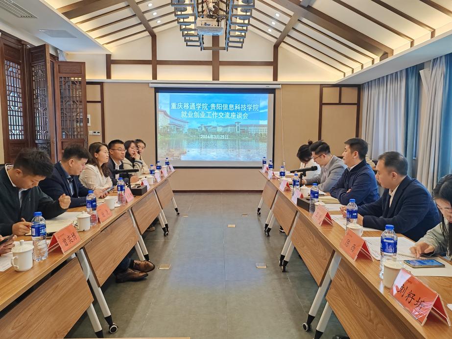 交流會上,余圖軍副校長對我校一行來訪表示熱烈歡迎,并介紹了貴陽信息科技學院的基本情況、“3+1”應用型人才培養模式及學校就業現狀。我校副校長陳仲華從重慶移通學院辦學特色、辦學成果、新校區發展、專業設置等方面進行介紹。雙方針對就業創業工作體系、創新創業課程學分設置、雙創先鋒班運營模式、畢業生畢業去向落實率監測、如何緩解畢業生慢就業緩就業等方面展開交流探討,共同謀求新的發展篇章。