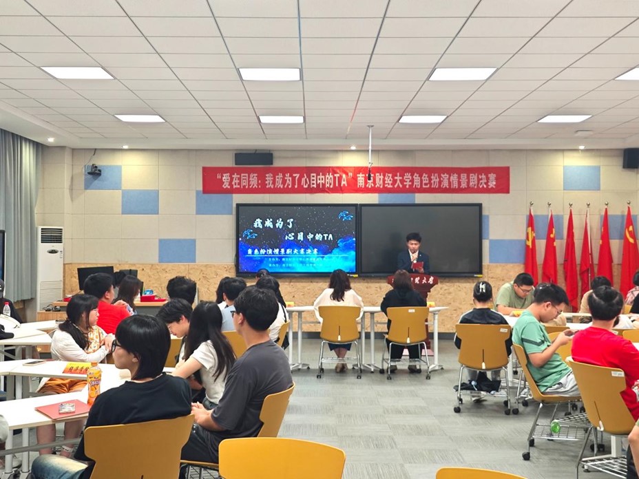 為進(jìn)一步宣傳普及心理健康知識(shí),豐富心理健康教育形式,在“全國大學(xué)生心理健康日”來臨之際,5月17日晚,由南京財(cái)經(jīng)大學(xué)心理健康教育中心主辦,工商管理學(xué)院承辦的“愛在同頻:我成為了心目中的TA”角色扮演情景劇大賽在博文樓101智慧教室拉開了帷幕。本次活動(dòng)邀請校心理中心李喆君老師、經(jīng)濟(jì)學(xué)院心理輔導(dǎo)員梁少穎老師、工商管理學(xué)院心理輔導(dǎo)員趙菲老師擔(dān)任評(píng)委,入圍決賽的相關(guān)學(xué)院學(xué)生代表參加此次活動(dòng)。