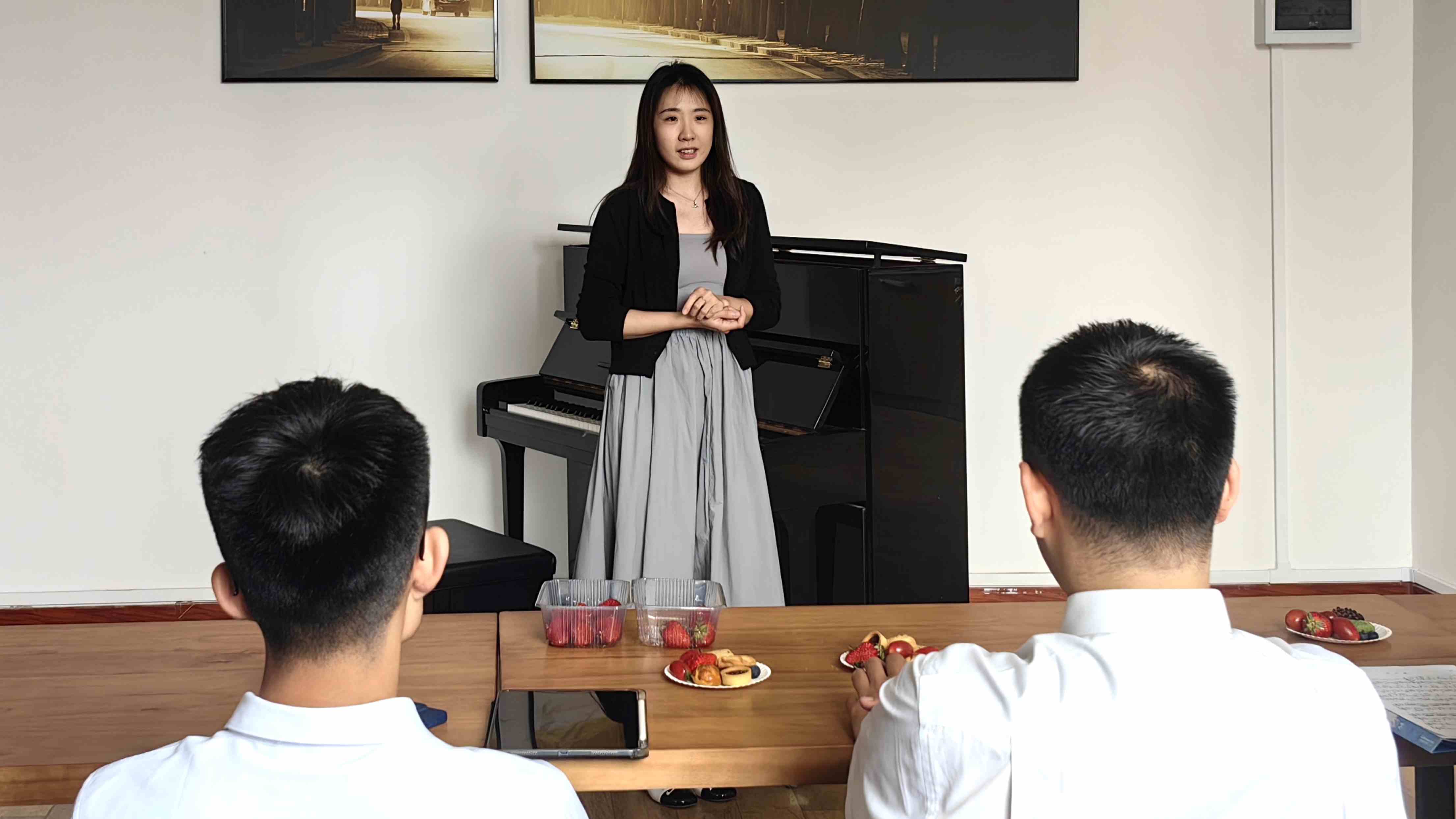 陳柯樺演奏的《My Dearest》,與之前柔緩輕快的樂曲不同,這首樂曲跌宕起伏,充滿了雄壯、莊嚴(yán)的色彩。在陳珂樺全身心投入地演奏下,同學(xué)們仿佛看到樂曲背后作曲家對夢想的不懈追求,心中也激情澎湃,對未來充滿了熱情與信心。
