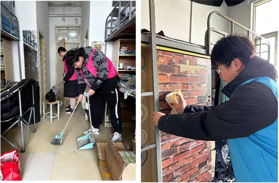 其次,學院還組織志愿者開展了畢業生宿舍清掃志愿服務活動。由于學院有部分畢業生因為工作的原因不能趕回宿舍收拾整理,所以我們的志愿者就主動請纓,幫助打掃畢業生宿舍,為學院營造整潔、舒適的宿舍環境貢獻一份力量,也通過勞動培養了他們的奉獻精神。