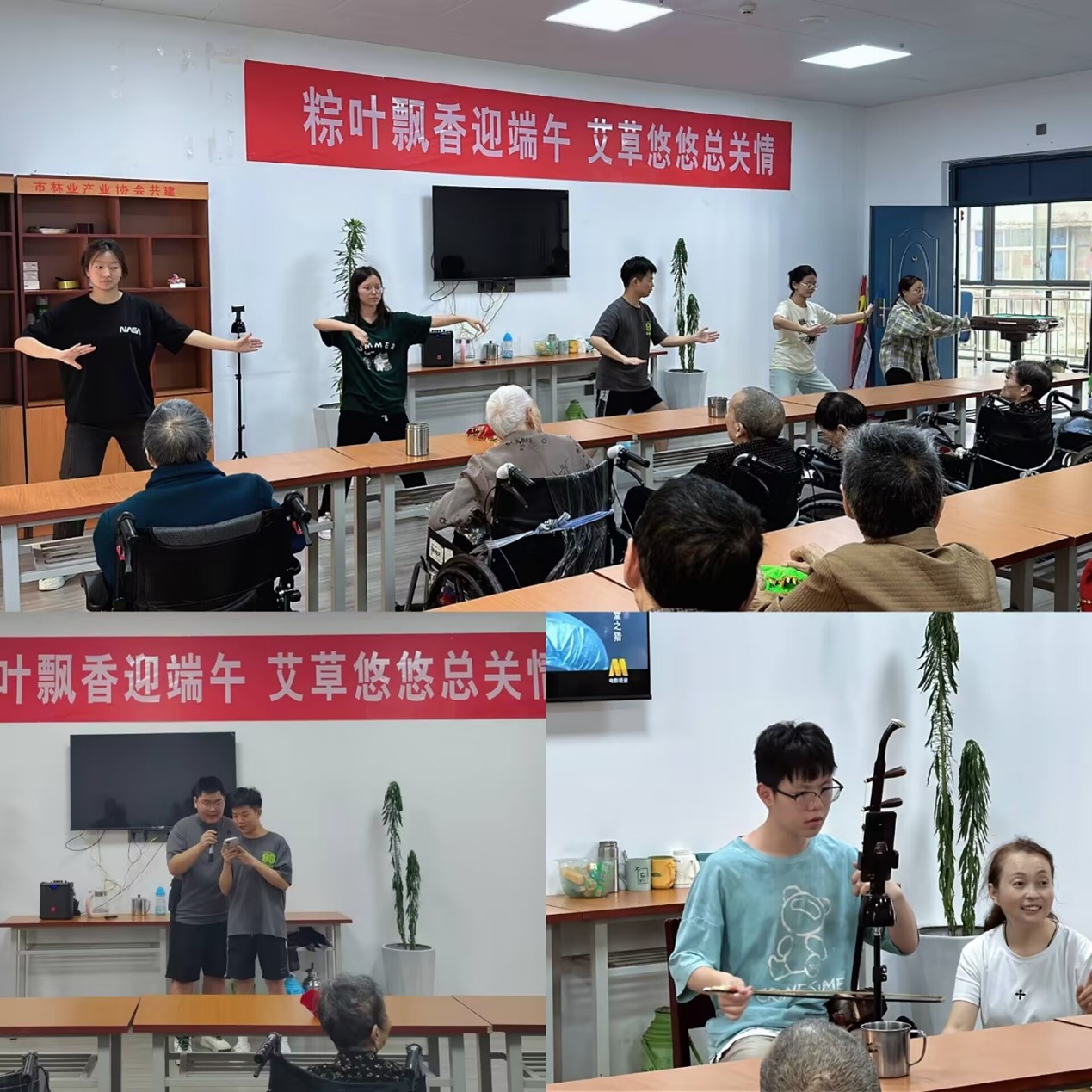 為了此次活動,隊員們提前準備了些許節目,旨在為老人們帶來精神上的愉悅享受。活動在悠揚的二胡獨奏《賽馬》中拉開序幕,婉轉悠揚的旋律深深吸引了在場的每一位老人。緊接著,隊員們展示了太極九式,流暢而優雅的動作贏得了老人們的陣陣掌聲。而當隊員們與老人們共同合唱經典歌曲《社會主義好》時,現場氣氛更是達到了高潮,這首充滿時代感的歌曲,仿佛穿越時空,帶著老人們重溫了那段充滿激情的歲月。