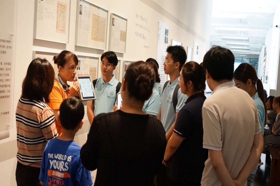 在講解人員的帶領下,宣講團師生首先走進清華大學藝術博物館,他們特別注意到,墻體上方有一行字:“打破現行制度上的某些陳規,不拘一格地造就使用優秀人才。”這是清華大學前校長蔣南翔致鄧小平同志的信,反映了清華大學“價值塑造、能力培養、知識傳授”三位一體的辦學理念。