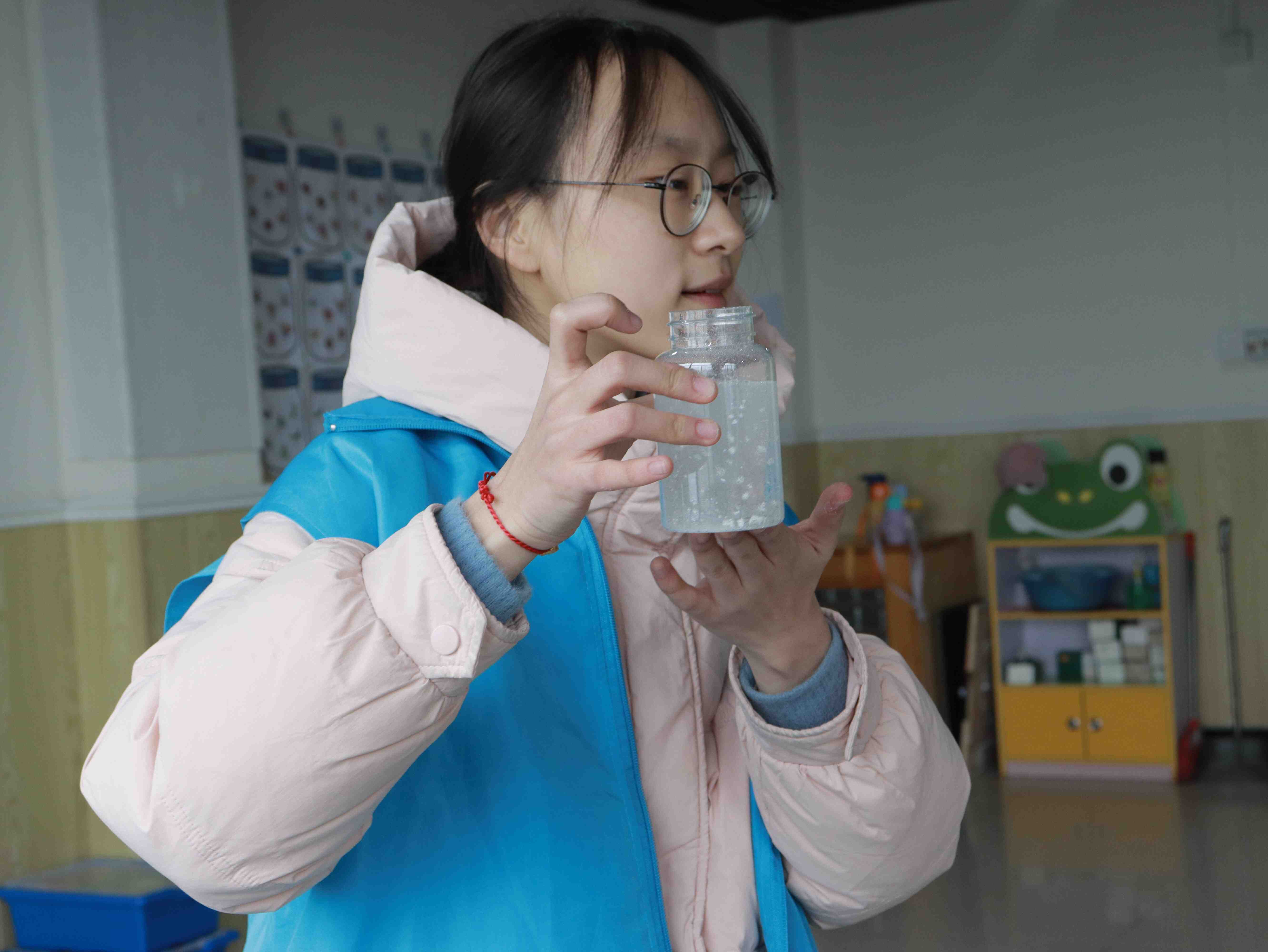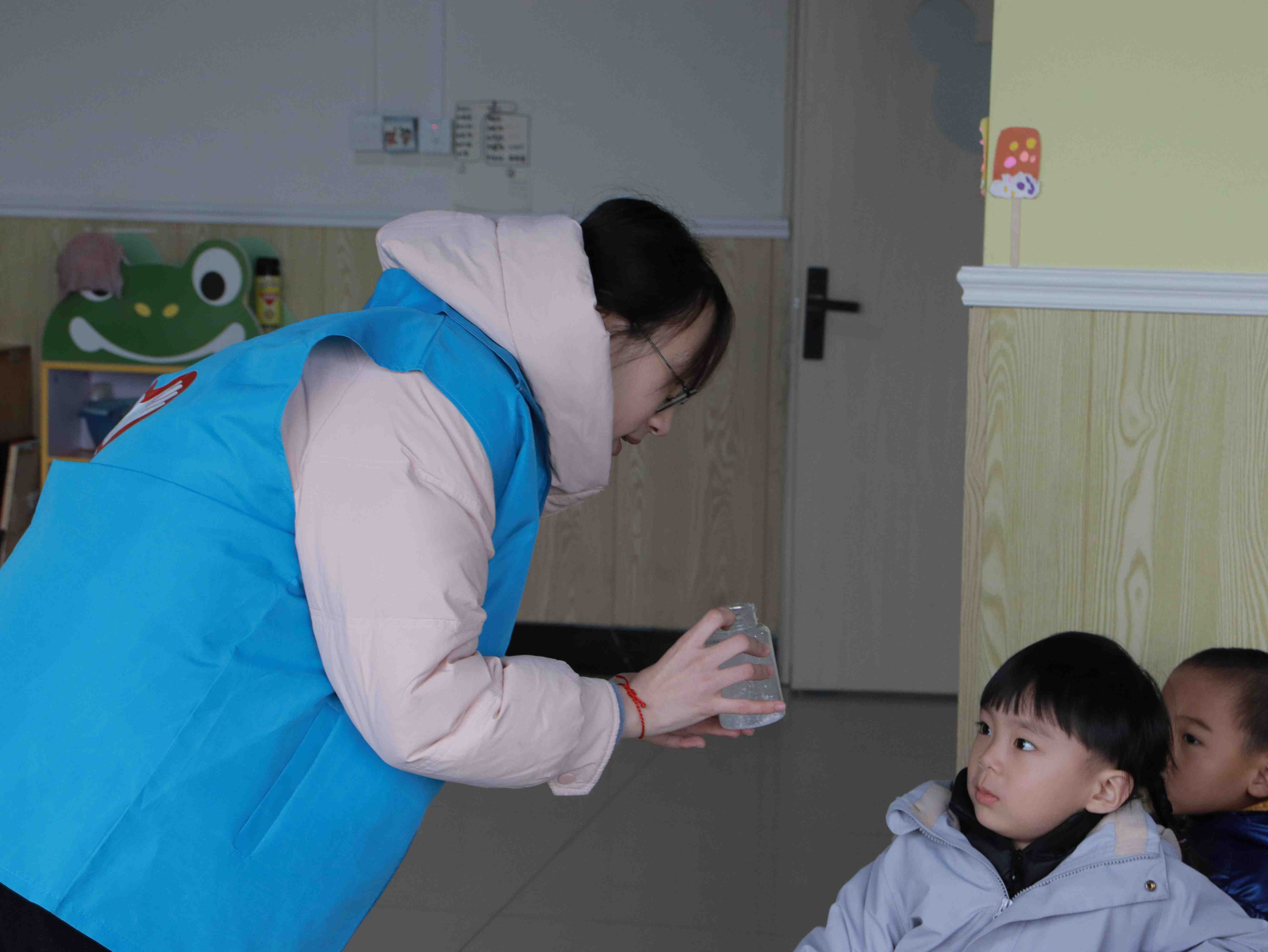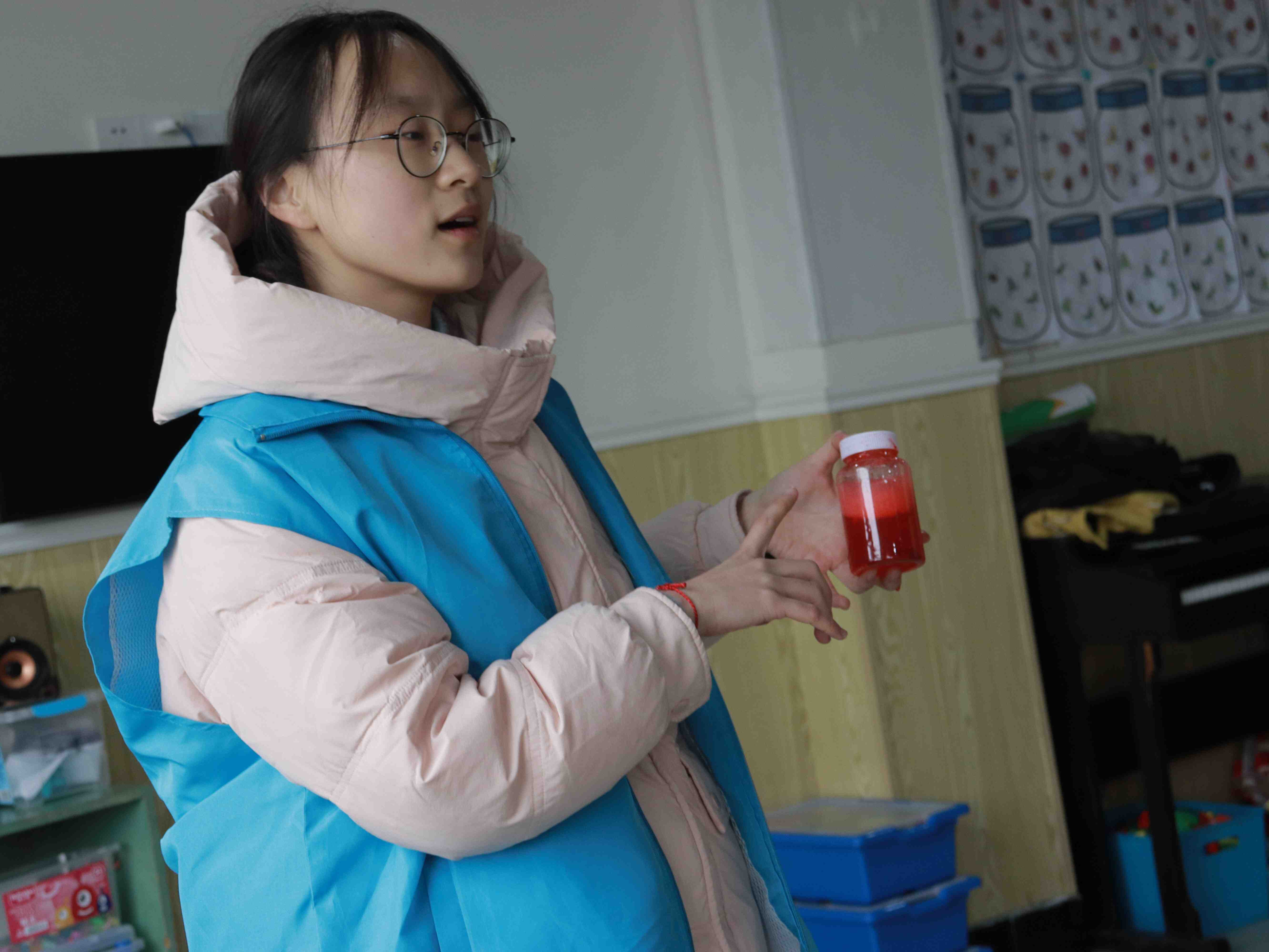 在了解了相關的零食小知識過后,志愿者通過現場互動的形式,進一步加深了小朋友對零食安全的意識,理論總是枯燥無味的,為了能讓小朋友們更加直觀的了解零食安全的小知識,志愿者通過現場實驗的方式為小朋友們演示零食中的添加劑對于身體的危害,志愿者通過將零食中的添加家放入透明瓶中并加水稀釋,小朋友也顯而易見的看到了顏色的變化,紛紛發出驚嘆的聲音,明白了零食中過量的添加劑是有害身體健康的。