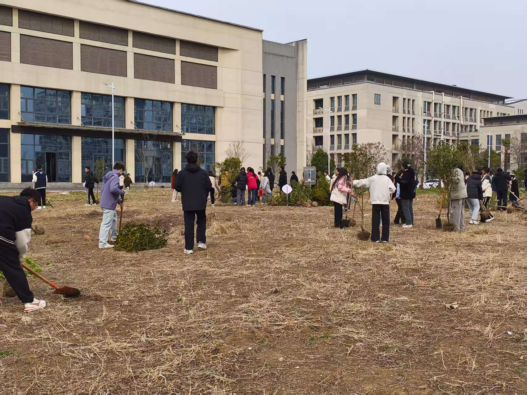 在經過幾輪小游戲之后,大家便開始了植樹任務,同學們各自拿起勞動工具,勢必要將一顆顆小樹苗種植在這片綠色草坪上,老師們也齊上陣,共同栽培下這些象征著新希望的小樹苗。活動中,學院書記老師表示:“此次活動不僅是為大地增添綠色,更是將雷鋒精神融入到實際行動中。作為新時代青年,新時代群眾,我們守護生命健康,也希望通過植樹為生態環境貢獻一份力量,傳遞積極向上的生活態度。”