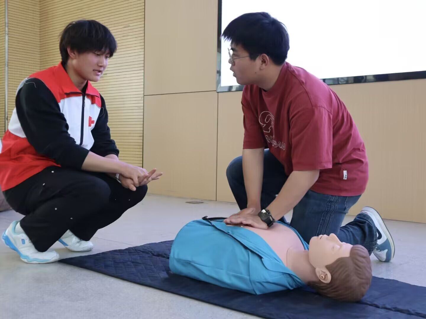 圖為志愿者指導(dǎo)同學(xué)進(jìn)行心肺復(fù)蘇。彭思楠 拍攝