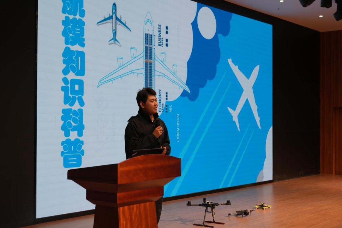 河北工程大學(xué)航模隊(duì)結(jié)合團(tuán)隊(duì)航模實(shí)踐與科創(chuàng)獲獎(jiǎng)經(jīng)歷,帶領(lǐng)同學(xué)們深入認(rèn)識(shí)航空航天模型。他不僅為同學(xué)們介紹了航模在消防、經(jīng)濟(jì)、環(huán)境、軍事等領(lǐng)域的不同用途,還提及珠海航展、中國(guó)大學(xué)生飛行器設(shè)計(jì)創(chuàng)新大賽等行業(yè)盛事與賽事,生動(dòng)展現(xiàn)航模在科技、民生、國(guó)防中的價(jià)值,激發(fā)同學(xué)們對(duì)航模運(yùn)動(dòng)與相關(guān)科技的探索熱情。在問(wèn)答環(huán)節(jié)中,同學(xué)們積極舉手參與,現(xiàn)場(chǎng)氛圍熱烈,熱情持續(xù)高漲,圍繞航模模型、應(yīng)用等話題各抒己見(jiàn),體現(xiàn)出對(duì)航模知識(shí)的濃厚興趣,在互動(dòng)中進(jìn)一步加深了對(duì)航模科技的理解與熱愛(ài),增強(qiáng)了關(guān)注國(guó)防、投身創(chuàng)新的使命感。