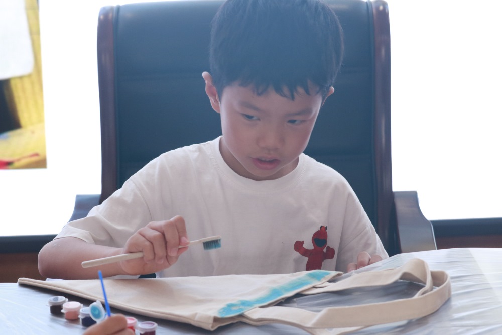 圖為一位小朋友在認真制作自己的帆布包 中國青年網通訊員 淦大舜 攝