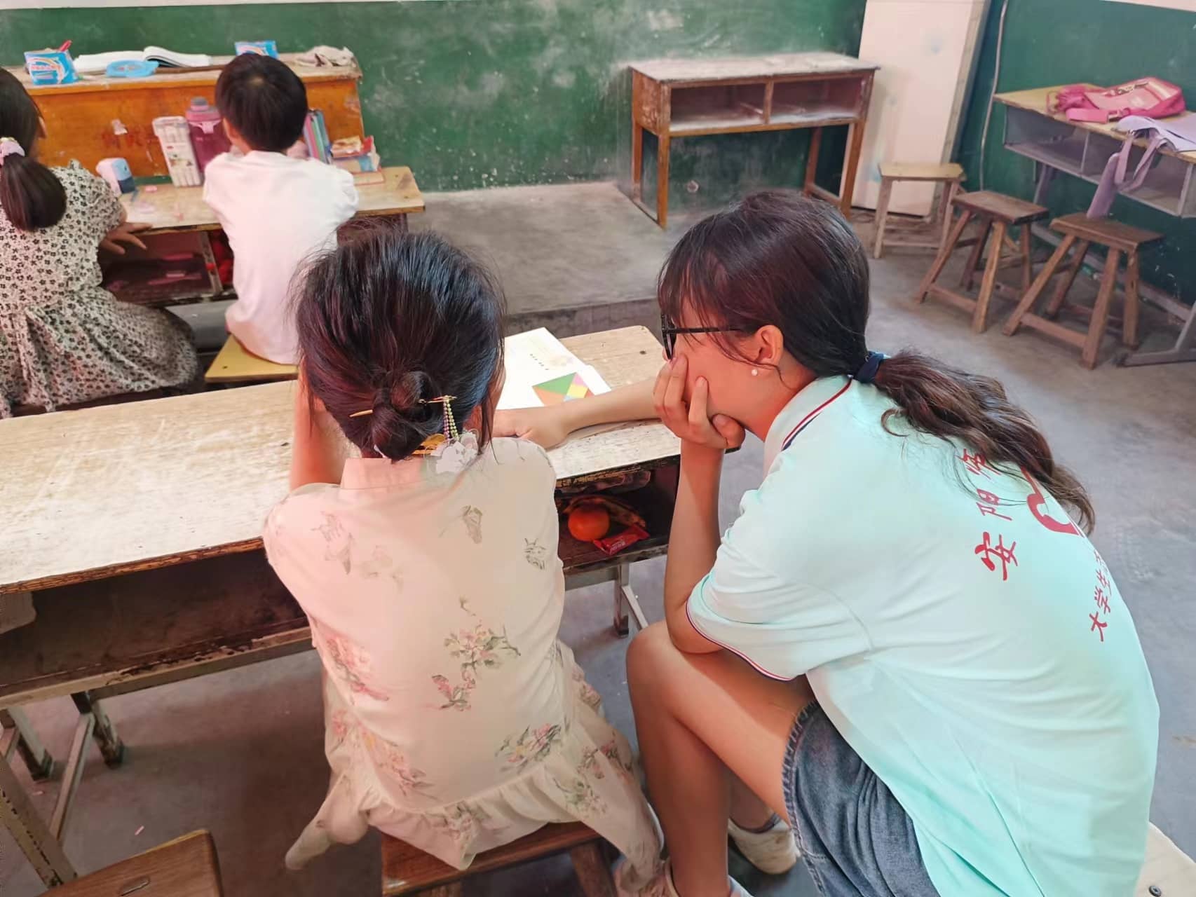 圖為支教成員為孩子講解數(shù)學(xué)題(姚婷婷 攝)