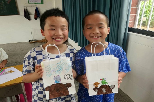 啟明星志愿服務(wù)團隊成員黃艾靜將手工課主題定為“提袋設(shè)計”。課前黃艾靜老師為手工課準備了若干牛皮袋、固體膠棒、帶有動物圖案的紙張、數(shù)把剪刀、鉛筆、彩筆等工具。